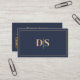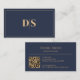 Carte De Visite Modern Minimalist Dark Blue Initials QR Code