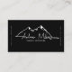 A sleek, modern business card design featuring a hand-drawn mountain illustration paired with an elegant signature name on a dark background. The reverse side includes a clean white layout for contact details, social icons, and a tagline, ideal for professionals who blend adventure with sophistication. Perfect for photographers, tour guides, outdoor brands, and creative entrepreneurs who want a polished yet personal design.