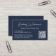 Professional dark blue business card featuring your name in a chic white script and your title and contact information (such as email, telephone numbers, firm name and mailing address) in clean, simple white lettering. Input a URL address to create a scannable QR code linked to your website, social media profile, or other platform that showcases your work, making it easy for others to explore your expertise. Personalize additional text on the back or leave blank.