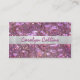 Carte de visite de femmes brillantes, avec des graphismes d'un look mauve brillant et crindée, sur le devant, avec un groupe d'argent, courant à travers le milieu. L'arrière du carte de visite est réalisé dans un look argenté solide. Personnalisez le texte rose en fonction de vos besoins professionnels. Une belle carte de démarcation qui convient à tous les types d'occupation ou d'affaires.