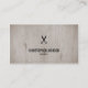 Elégant modèle de carte de visite personnalisable avec arrière - plan en bois et motif ciseau noir. Design élégant et simple, parfait pour salon de beauté, coiffeur, barbier, coiffeur.