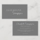 Cet élégant carte de visite moderne présente un texte élégant avec un thème de texte gris et blanc. Tout le texte à l'avant et à l'arrière peut être customisé.