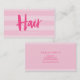 Carte De Visite Moderne Pink Stripes Brush Script Salon des cheveu