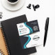 Un carte de visite propre et poli en bleu et noir qui est parfait pour les professionnels, les stagiaires, les étudiants, et plus encore. Ajoutez votre code QR, votre logo et votre slogan en quelques clics.