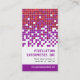 Une douche de pourpre et les pixels tonaux de rouille pleuvoir vers le bas sur une raison sociale sur l'avant de ce carte de visite. Un site Web imprime ci-dessous dans un panneau pourpre riche. L'inverse indique une partie de l'image de pixel avec la pleine impression de l'information de contact dans un panneau pourpre ci-dessous. Grand pour la technologie de l'information, la télécommunication, ou les sociétés de commercialisation et de communications. Disponible dans des couleurs alternatives avec les produits assortis.
