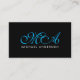 Carte De Visite Monogramme bleu Élégant Script Arrière - plan noir