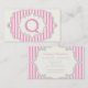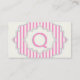 Carte De Visite Monogramme dans un cadre à rayures roses, blanches