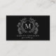 Carte De Visite Monogramme de crête florale noir moderne QR Code