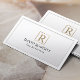 Carte De Visite Monogramme Gold Initial Elegant Blanc encadré