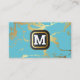 Carte De Visite Monogramme | Marbre Turquoise gris or