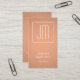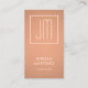 Faites une première impression mémorable avec un carte de visite simple et élégant rose pâle et faux en cuivre. Le design présente un élégant monogramme de carré de typographie moderne et minimaliste imprimé sur une disposition verticale chic. Présentez vos coordonnées avec style professionnel. Convient aux entrepreneurs indépendants, aux petites entreprises ou aux professionnels de bureau d'entreprise, cette carte simple et minimale est à la fois tendance et intemporelle. Il peut être personnalisé pour n'importe quelle profession.