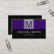 Carte De Visite Monogramme moderne Noir & Profond violet Arrière -