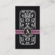 Carte de visite personnalisé noir blanc damassé bande rose bande monogramme.