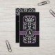Carte de visite personnalisé noir blanc damassé bande violet bande monogramme.