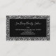 Ce design de poutres glamour à la mode, professionnel et unique présente un grand monogramme personnalisable en gris argenté sur le devant, une élégante typographie d'affichage, ainsi qu'un nom personnalisable dans un joli script, avec un look à la main en blanc dans un rectangle noir aux contours gris, avec le titre de l'emploi ci-dessous. Le arrière - plan comprend des taches de léopard d'argent glam sur un arrière - plan gris argenté plus léger. Le verso de la carte contient du texte plus personnalisable. Vous pouvez personnaliser cet élément en modifiant le monogramme, le nom et le texte dans le modèle du produit.
