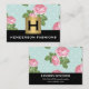 Carte De Visite MonogrammeArgent métallique / Rose et Pois
