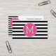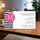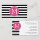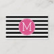 Carte De Visite Motif à rayures noir et blanc Monogramme rose chau