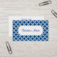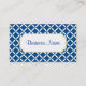 Un motif moderne bleu et blanc décore cette carte de visite design. Customisez ce carte de visite pour répondre à vos besoins. Ajoutez ou supprimez des informations, changez le style de police, la taille de police, etc...Le design est tiré de l'art original. Utilisez ce carte de visite élégant pour un spa, salon, petite entreprise, décor maison, planificateur d'événements, garderie, etc...