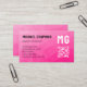 Carte De Visite Motif QR de maillage géométrique rose chaud Monogr