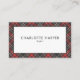 Carte de visite à motif carré couleur noir, rouge et blanc, élégante bordure gris charbon de bois avec plaque d'identification blanche. La plaque d'identification peut être utilisée pour les détails de votre entreprise ou de votre nom. L'envers a un arrière - plan blanc et croustillant avec les coordonnées définies dans un texte gris ardoise. Conçu par Thisisnotme©