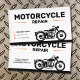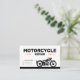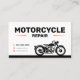 A professional business card design for a motorcycle repair shop with orange accent elements and featuring a silhouette of a vintage motorcycle. It could also be used for motorcycle-related services (sales, shop, repair, motorcycle school, etc).