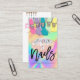 Couleurs personnalisables sur le texte et les médias sociaux icônes (les icônes peuvent être cachées ou plus peuvent être ajoutés en choisissant "customiser plus loin") Coin ongles technologie ongles carte de visite avec des mains personnalisées illustrées tenant des diamants avec de longs clous de pointes stylés.