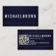 Carte De Visite Navy Minimalist QR Code | Bold Modern Driver