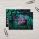Ajoutez votre nom et vos coordonnées à ce carte de visite d'extension moderne lash studio/eyelash, avec un feuillage vert foncé tropical et un cadre bleu nuit. Les mots "Lash" et "studio" sont en typographie de néon violet et rose avec votre nom en dessous, et vos coordonnées au verso de la carte. Il y a aussi un code QR, où vous pouvez ajouter votre URL de médias sociaux. Contactez le concepteur si vous souhaitez une couleur différente sur le texte du néon.
