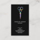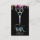 Un luxueux Neon Unicorn Holographic cheveux styliste carte de visite avec ciseaux holographiques et la typographie moderne de luxe, idéal pour coiffeur, salon de coiffure, extensions cheveux, perruques.... Les parties métallisées sont simulées par le design. Il n'y aura pas de métal sur ce produit.