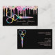 Un luxueux Neon Unicorn Holographic cheveux styliste carte de visite avec ciseaux holographiques et la typographie moderne de luxe, idéal pour coiffeur, salon de coiffure, extensions cheveux, perruques.... Les parties métallisées sont simulées par le design. Il n'y aura pas de métal sur ce produit.