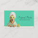 Un carte de visite simple et amusant avec un chien enveloppé dans une serviette, portant un masque oculaire, avec ses pattes tendues prêtes à être choyées. Présenté sur un arrière - plan vert turquoise. Il y a beaucoup d'espace pour ajouter vos détails d'affaires comme vous le souhaitez.