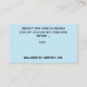 Carte de visite, taille : États-Unis : 8,9 cm x 5,1 cm, papier : Standard Semi-brillant, coins : Carré