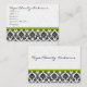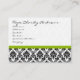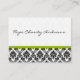 Carte de visite noir blanc Damas avec vert pomme