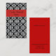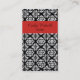 Carte de visite élégant de dames, fait dans un motif noir et blanc de damassé. Une rayure audacieuse rouge, à travers le dessus, et le dos solide de rouge a le texte noir prêt à personnaliser avec votre information. Un beau tient la carte grande pour n'importe quel genre de profession ou d'affaires.