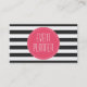 Ce carte de visite chic et chic d'organisateur comporte un arrière - plan rayé horizontal noir et blanc classique. Sur l'arrière - plan est un cercle décoratif rose lumineux avec un texte personnalisable qui lit le "organisateur". Le dos de la carte est blanc simple avec la pièce pour votre nom, fonction et détails de contact. C'est les cartes de visite idéaux pour n'importe qui en cas ou l'industrie de planification de mariage.