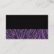Carte de visite noir et pourpre de professionnel de zèbre
