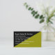 Êtes-vous une femme qui exploite une petite entreprise? Le carte de visite féminin simple mais distinctif en vert feuille et noir fonctionne bien pour beaucoup de ces entreprises. Conception carte de visite tout usage 2 tons convenant à toute profession ou entreprise. Veuillez noter : Le texte de la carte sera blanc (pas vert clair comme cela peut être montré ici) sauf si vous customisez à une couleur différente.
