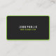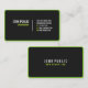 Un carte de visite noir moderne avec cadre ou bordure vert et coins arrondis. Ce modèle de carte de visite simple mais élégant est à deux côtés. La carte de visite noire moderne aux angles arrondis est idéale pour un homme d'affaires ou une femme professionnelle. Un carte de visite noir reçoit toujours l'attention d'un client potentiel. Les coins arrondis et les éléments de texte et de bordure de couleur verte ajouteront à cet effet.
