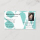 Carte De Visite Noir Turquoise moderne avec photo et monogramme
