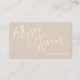 Un maquilleur moderne et audacieux, un carte de visite de coiffure et de maquillage simple avec un nom surdimensionné à l'avant, avec une police manuscrite et une photo, un code qr et des médias sociaux à l'arrière sur le beige bronzé. Toutes les couleurs sont modifiables.