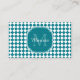 Un monogramme de motif de carreaux à carreaux géométriques turquoise et blanc à la mode visitant carte de visite. Personnalisez ce design élégant en ajoutant votre nom et votre initiale monogrammée à l'avant, ainsi que vos coordonnées à l'arrière.