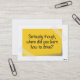 Note simple qui ressemble à n'importe quelle autre sur un morceau de papier jaune, et 'enregistrée' à l'arrière - plan. Demandez à la personne qui se trouve sur le parking à côté de vous, ou à quelqu'un que vous voyez sur la route, "Sérieusement, Où avez-vous appris à conduire?" Le petit cadeau parfait à laisser sur le pare-brise pour cette personne qui ne sait pas se garer, qui n'est pas prévenant, ou qui n'a pas de concept d'espace personnel. Entrez les notes de stationnement de Drivin' Me Nuts! Des petits cadeaux amusants pour vos amis, les nouveaux conducteurs, ou juste pour garder dans la boîte de gants de votre propre voiture pour le stationnement échoue que vous tombez sur. Plus besoin d'écrire une note manuscrite !