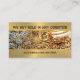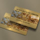 Nous achetons de l'or dans n'importe quelle condition carte de visite en espagnol et anglais. dispose d'un arrière - plan d'or avec bijoux et texte personnalisé en brun foncé.