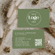 Carte De Visite Olive Green Elegant Custom Company Logo QR Code