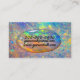 L'opale est fixée contre un arrière - plan opal coloré et texturé. Cet arrière - plan présente un mélange de teintes irisées, dont le blues, le rose et le jaune, avec de petites inclusions étincelantes qui ressemblent à de minuscules pierres précieuses ou des cristaux.