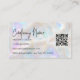 Make a stunning impression with this opal shimmer business card, featuring a soft, iridescent texture and an elegant, handwritten script name. The design features a simulated opal effect (not genuine opal), designed to create a luminous, pastel glow that appears luxurious and modern. For the best print results, we recommend choosing a lighter paper option, as it enhances the clarity and brightness of the opal-style details.