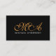 Carte De Visite Orange Monogram Élégant Script Arrière - plan noir