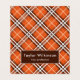 This elegant and modern business card features a orange, black and white plaid background. The text combines modern sans serif fonts for a classy and sophisticated look.