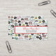 Un carte de visite comportant une conception orientée de hippie se composant des illustrations des bicyclettes, des verres, des enregistreurs à cassettes, des disques vinyle, des fausses clés, des moustaches, des appareils-photo, et des rétros téléviseurs d'antenne.