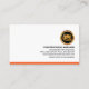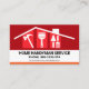 Une couche supérieure rouge foncé comprend un toit et des outils manuels qui sont placés dans des bandes verticales rouge clair. Les outils peuvent représenter une partie du service que vous pourriez offrir, par exemple le marteau pour les réparations à domicile, la brosse pour la peinture et enfin la trotte de jardin et la fourche pour l'aménagement paysager-jardinage. Près de la base de la carte se trouve le nom d'entreprise, ses coordonnées et une légende de slogan pour faire connaître vos services. Vous pouvez modifier la légende en slogan pour qu'elle corresponde à vos besoins en services. Sur le dessus, dans une couverture blanche, les détails sont au mur droit de la carte avec un logo doré de paysage maison que vous pouvez utiliser, en haut. Il est suivi par votre nom prestigieux, les coordonnées et une option de slogan. Une bande orange similaire encapsule la base de la carte. Cette carte serait idéale pour la construction, le bâtiment et les thèmes de bricolage.